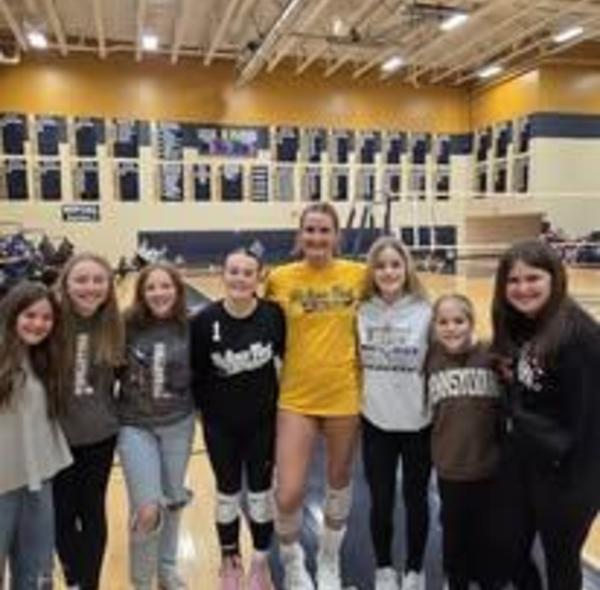 A-RHS Volleyball team supports A-RMS Girls Basketball!