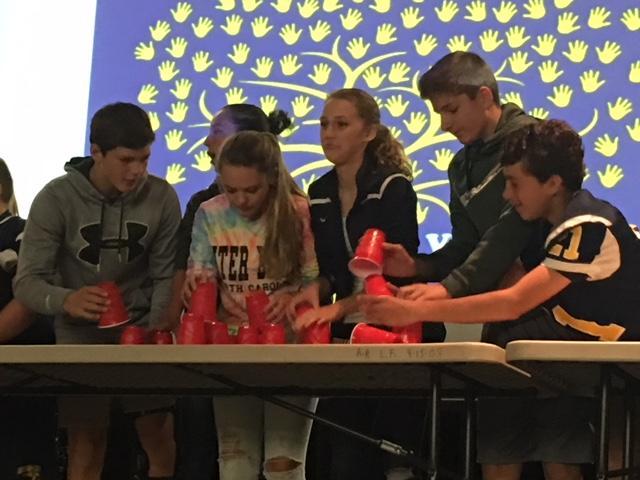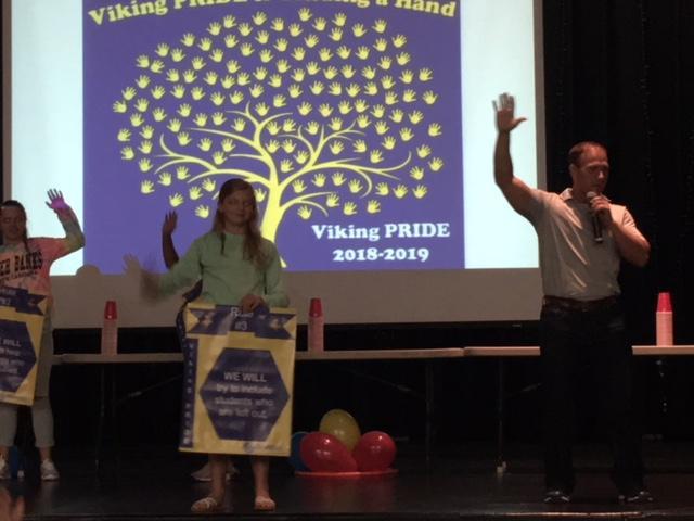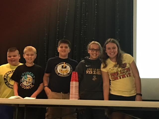 The Apollo-Ridge Middle School held their annual Olweus Bullying Prevention Kick-off Assembly today. Students participated in team building activities during a "Minute to win it" competition. Students also learned about our 4 building-wide Viking PRIDE Rules: