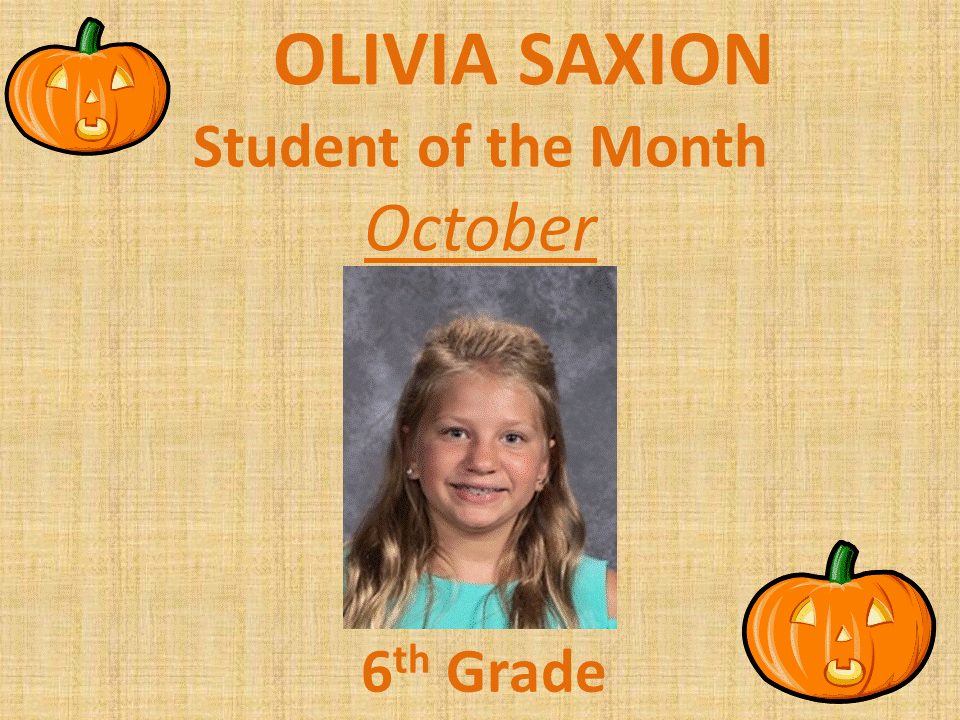 Congratulations to our October Student of the Month Award winners. This month's winner are: